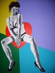 2010Zw/w pinup op rood hart en achtergrond in geel, violet, groen en licht turqoise