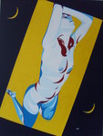 2010Maanaanbidster in geel vlak op donkerblauwe achtergrond