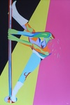 2010Geel 'naakt' op rode balk, tegen een dreigende paarse hemel